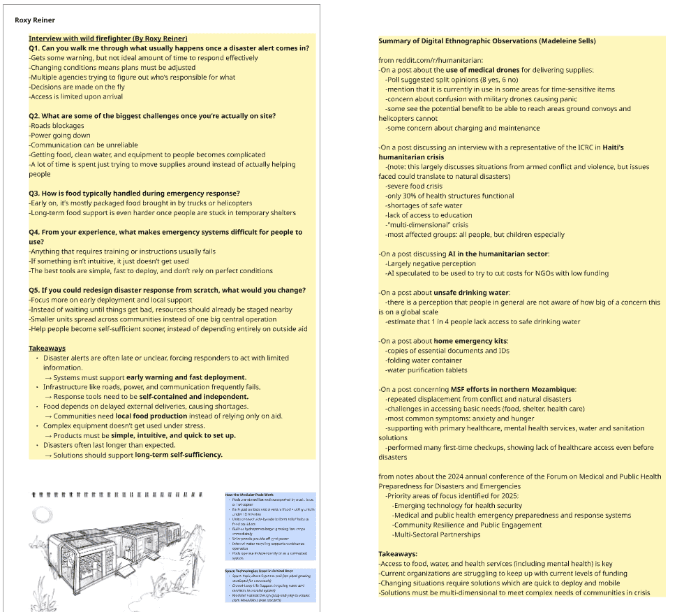 we also conducted an interview with a firefighter that works in remote locations to find out what problems they experience on the ground, and a digital ethnography to patient needs in natural disaster response in haiti and mozambique.